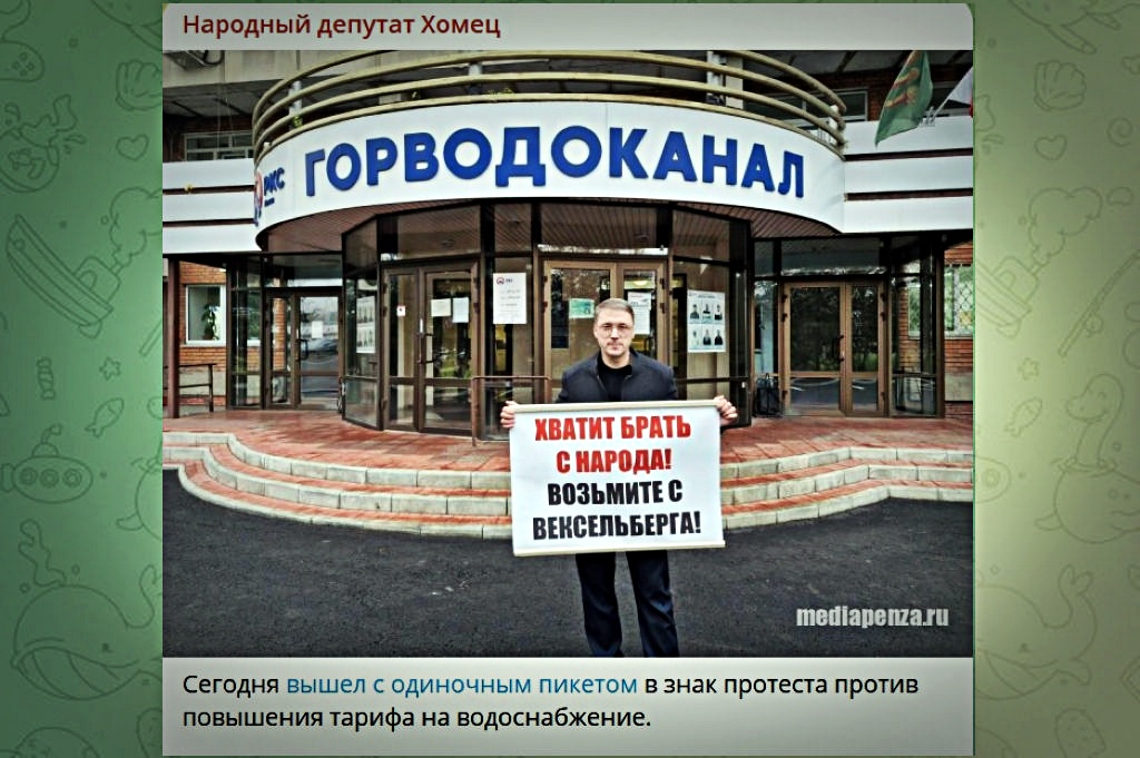 Объективности ради, следует также сказать, что, кроме популистской фотосессии с плакатами, жена Падалкина попыталась предпринять и реальные шаги для разрешения всей создавшейся ситуации. И это, пожалуй, единственное, что и нужно делать в случае какого-либо недовольства действиями буржуев и власти – она обратилась в прокуратуру Пензенской области с просьбой провести проверку признать решение гордумы насчёт повышения тарифов на воду незаконным.
