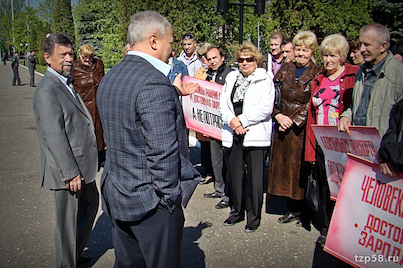 Суть вопроса – руководство ООО "Горводоканал" требует поднять тариф на водоснабжение выше нормы. Якобы не хватает денег для ремонта и восстановления изношенных сетей. Депутаты гордумы, которые, как они считают, выражают интересы избравшего их народа, это дело одобрили на комиссии, одобрят и на сессии, однако последнее слово всё-таки за губернатором. В общем, без пикета людям счастья не видать.